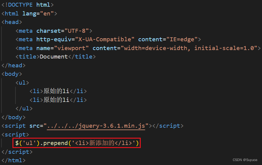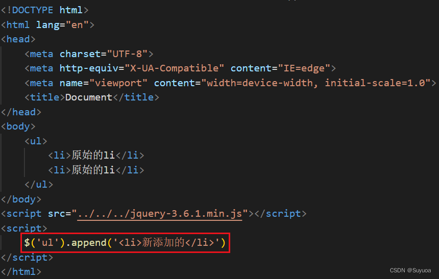 相当于原生JS的appendChild(),会添加到指定元素内部的最后面(最后一个子元素)