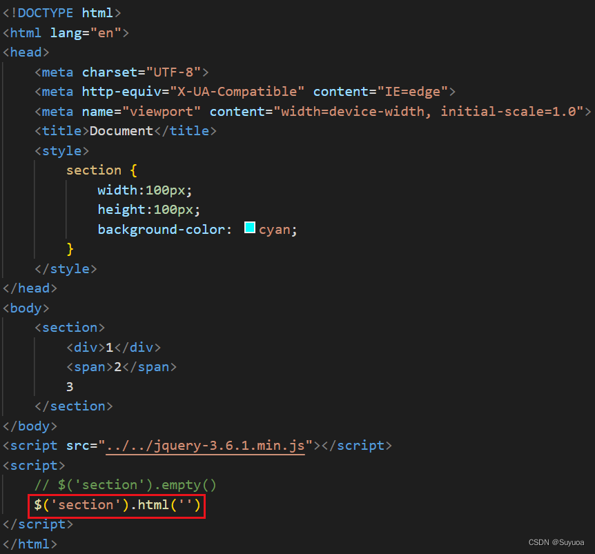 我们想达到删除元素子节点也可以用element.html('')来代替