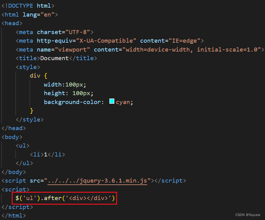 引号里是要创建的html标签,创建完了不添加在页面上是没有效果的,我们放在添加元素内一起展示