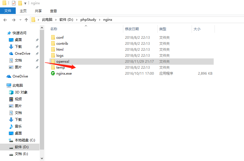 在phpstudy 安装目录下找到nginx文件夹 新建openssl目录