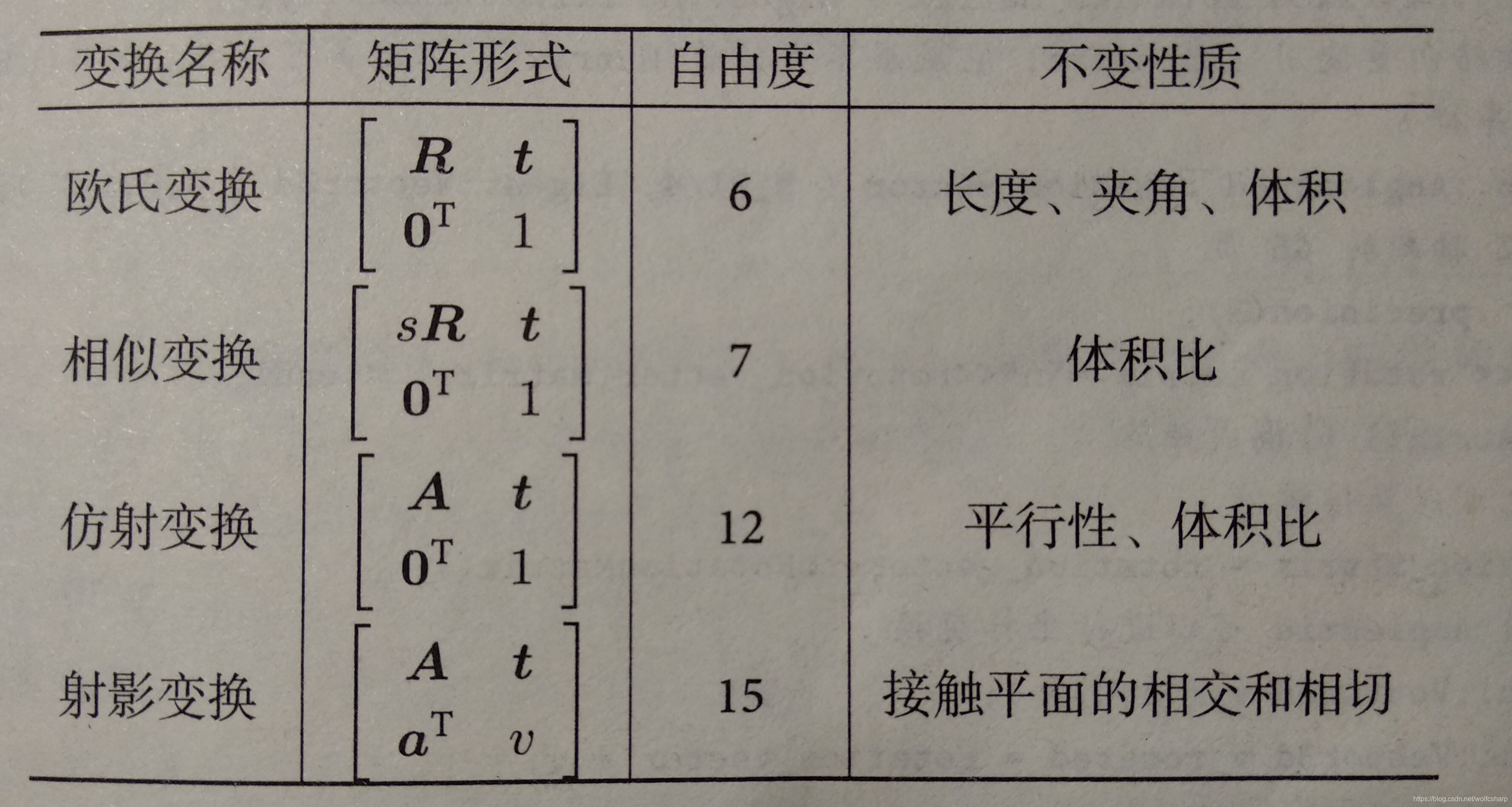 相机运动是一个刚体运动,它保证了同一个向量在各个坐标系下的长度和夹角都不会发生变化,这种变换称为欧式变换。