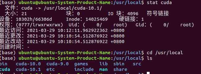 说明:我这个没带cuda的版本,因为我后续要指定软链接,如果是单个cuda,可以直接配死,输入 cd /usr/local/,ls,显示出cuda的版本号,用cuda-10.1代替里面的cuda,就这么简单。