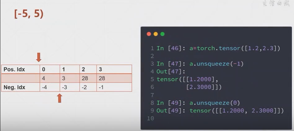 print(a.unsqueeze(-5).shape) #输出结果 torch.Size([1,4,1,28,28])