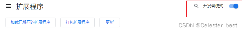 打开chrome浏览器的扩展程序界面,打开开发者模式按钮,