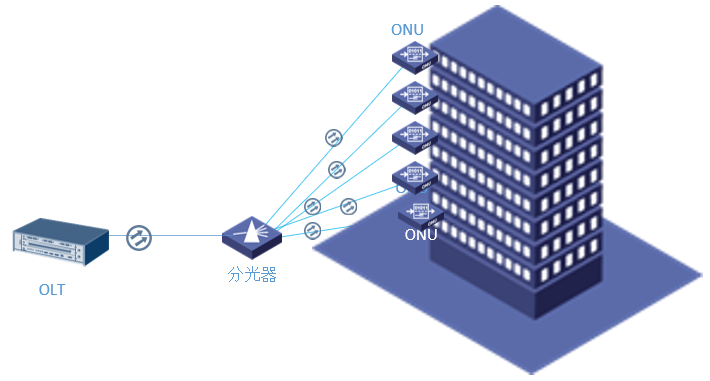 ODN的配置通常为点到多点方式,即多个ONU通过一个ODN与一个OLT相连,这样,多个ONU可以共享OLT到ODN之间的光传输媒质和OLT的光电设备。