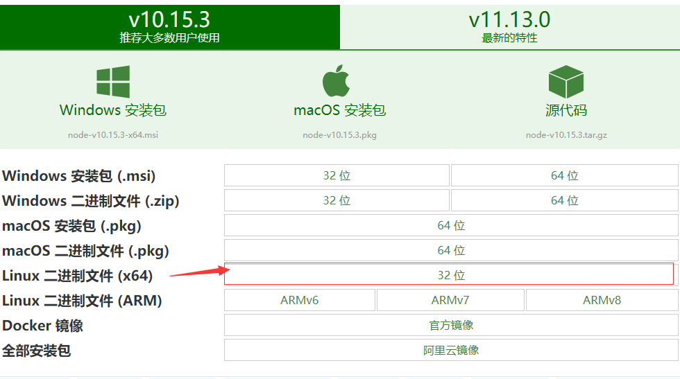 - 从nodejs官网(http://nodejs.cn/download/)下载安装包