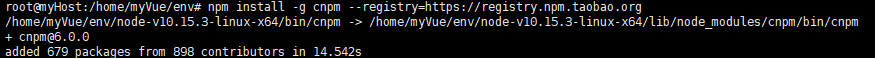 sudo ln -s /home/myVue/env/node-v10.15.3-linux-x64/bin/cnpm /usr/bin/cnpm7.安装vue-cli