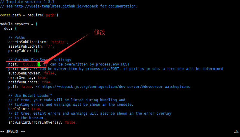 修改config/index.js 的 host 属性为 ‘0.0.0.0’