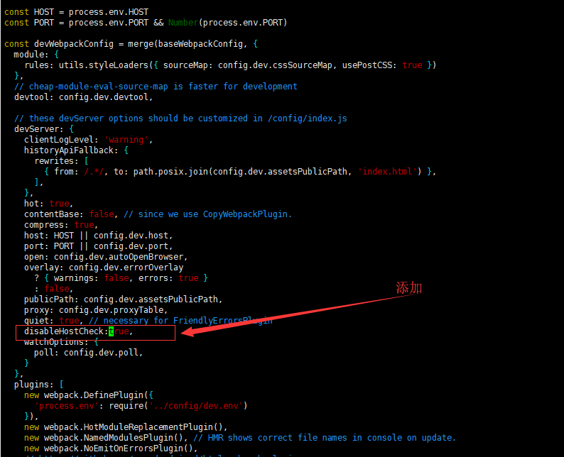 修改 build/webpack.dev.conf.js 的 devServer 配置