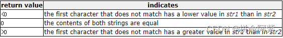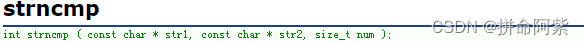 通过查询 strncmp 函数,我们可以发现 strncmp 函数有三个参数函数,前两个参数是两个指针(分别指向着两个需要比较的字符串),第三个参数是需要比较的字符个数。因为只需要比较不需要改变,所以前面加上了 const 。返回值为 int ,第一个字符串大于第二个字符串,则返回大于 0 的数字;第一个字符串等于第二个字符串,则返回0;第一个字符串小于第二个字符串,则返回小于0的数字。