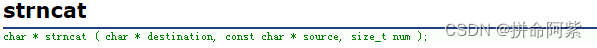 strncat: 指定长度追加字符串函数,将一个字符串中的 n 个字符追加到另一个字符串的后面