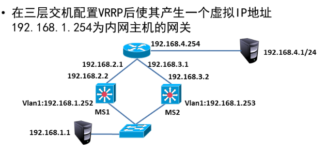 [sw1-Vlanif1]vrrp vrid 1 virtual-ip 192.168.1.254 //开启vrrp功能,组号是1,虚拟设备的ip是1.254