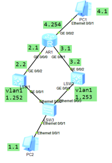 [sw1-Vlanif1]ip add 192.168.1.252 24 //配置ip