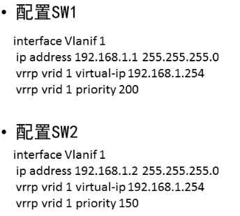[sw1-Vlanif1]vrrp vrid 1 virtual-ip 192.168.1.254 //在sw1配置vrrp