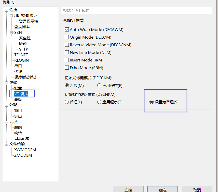 Xshell连接ubuntu后vi编辑器中数字小键盘乱码 问题描述:使用vi编辑器编写文本时,只要使用数字小键盘输入数字,必定会输出乱码 解决:在Xshell中如下设置 版权声明:本文为qq_43496435原创文章,遵循CC 4.0 BY-SA版权协议,转载请附上原文出处链接和本声明。原文链接:https://blog.csdn.net/qq_43496435/article/details/121277482