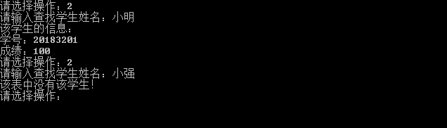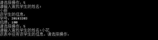 (3) 根据姓名进行查找,返回此学生的学号和成绩; 运行结果: