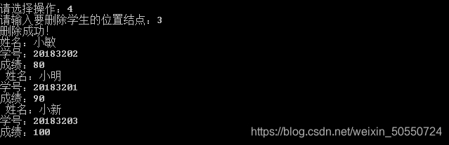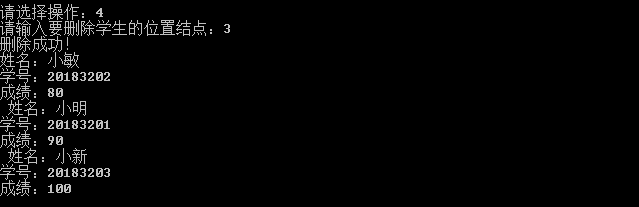 (4) 根据指定的位置可返回相应的学生信息(学号,姓名,成绩); 运行结果: