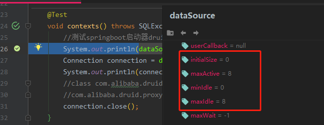 通过debug启动,然后查看dataSource的属性,对于我,一般只要查看initialSize=0就是未注入成功