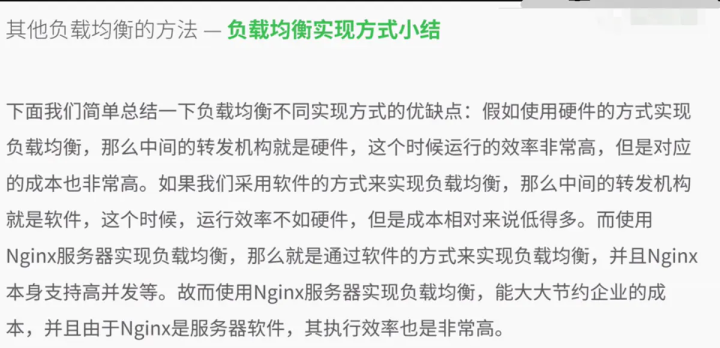 其他负载均衡的方法 对于我们前端而言只需要将负载子我们的项目里面配置好就可以了不需要去太深入的学习,只要给人家运维一眼一口,然后知道怎么配合就完了,因为对于运维来讲,他们是不太懂 Node 的什么什么东西的,他们只会配这个 Nginx 的,所以说我们学这个的话只要学的够用就 ok 了