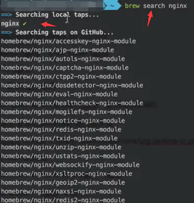 brew search nginx命令行输出如下:打了一个对勾就证明是有的,接下来就可以安装了