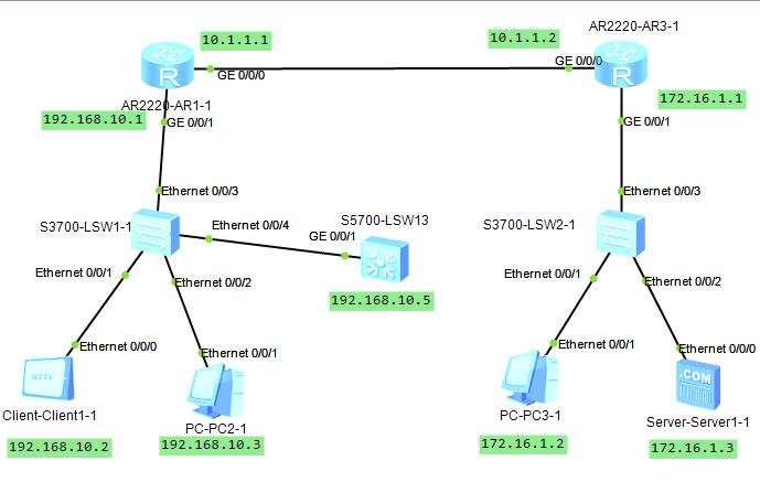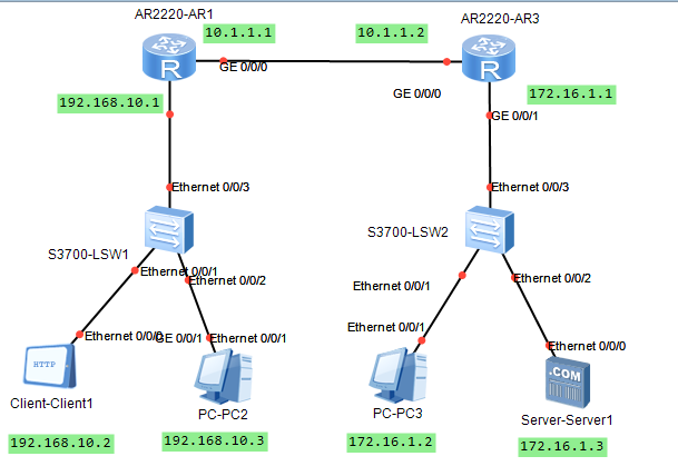 按照图中配置好IP、静态路由后,两边可以正常通信,我们按照以下要求进行配置: