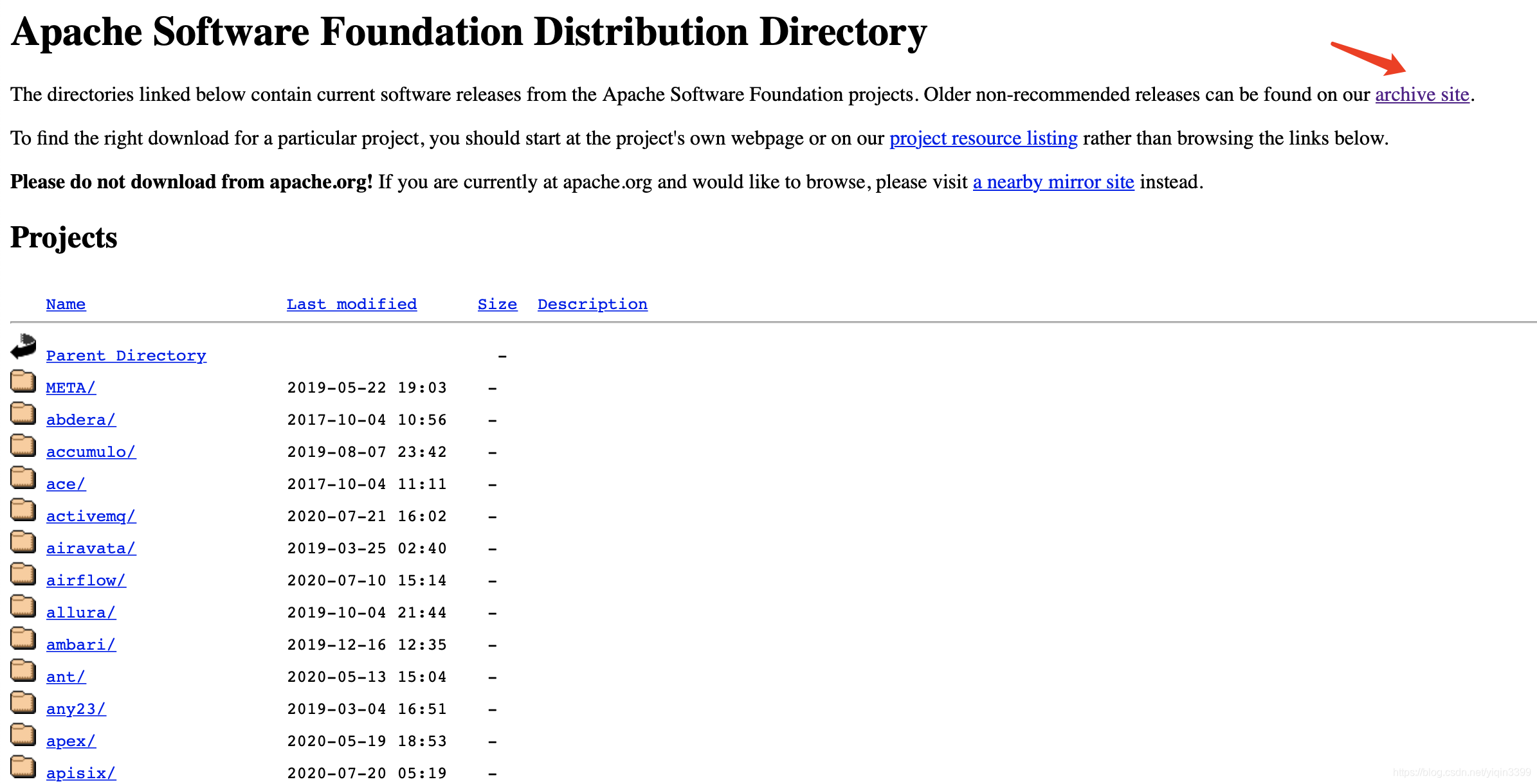 4.进去之后,可以看到很多的项目,选择jmeter。这个界面上面有个提示,如果下载历史版本可以访问 archive site