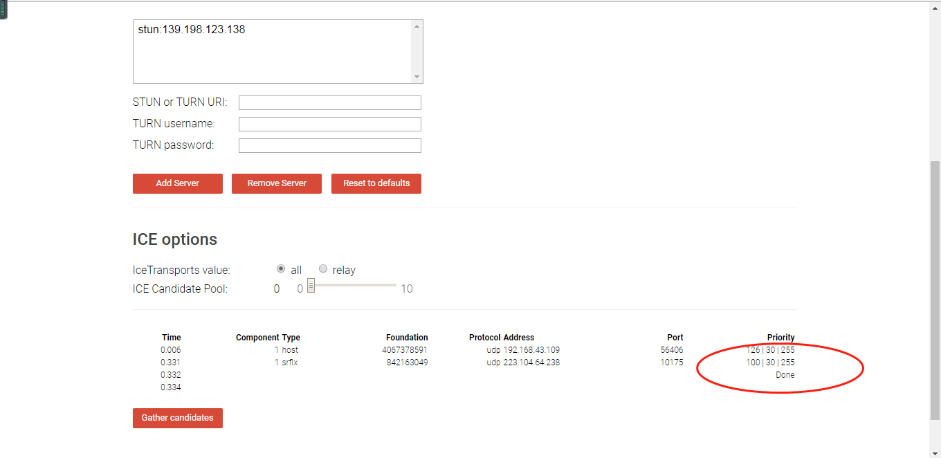 测试turn有效性(出现三个地址加"done"才为有效):