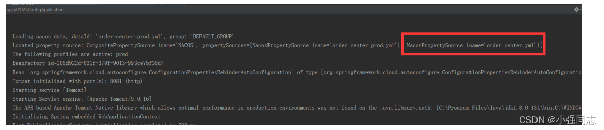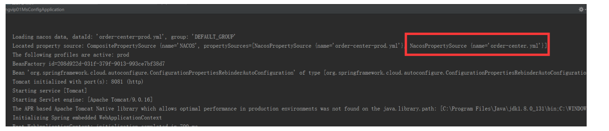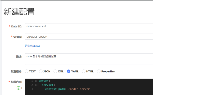 所以我们需要创建一个通用配置文件:order-center.yml配置 那么order-center.yml就是一个通用配置了,不管是启动prod,还是dev 都会有该段配置order-server的 context-path 配置