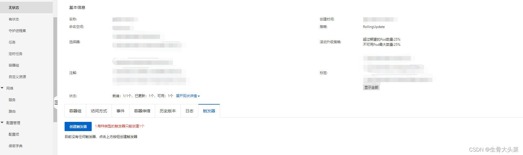 阿里云容器服务Kubernetes实现应用自动部署1.容器服务控制台->选择容器->详情->触发器->创建触发器 2. 容器镜像服务->选择对应的镜像->触发器->创建->填入容器服务的触发器url 3.然后就是测试验证了