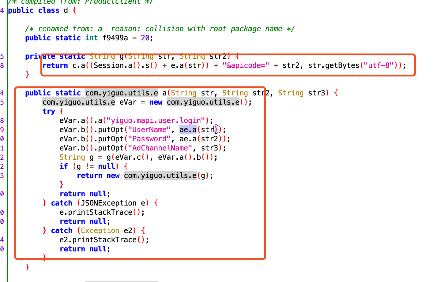 那就继续hook这个类:com.yglibary.a.e 使用objection发现就是这个类的a方法,看到整个流程就是固定传入2个写死的参数,拼接上下面这一串: