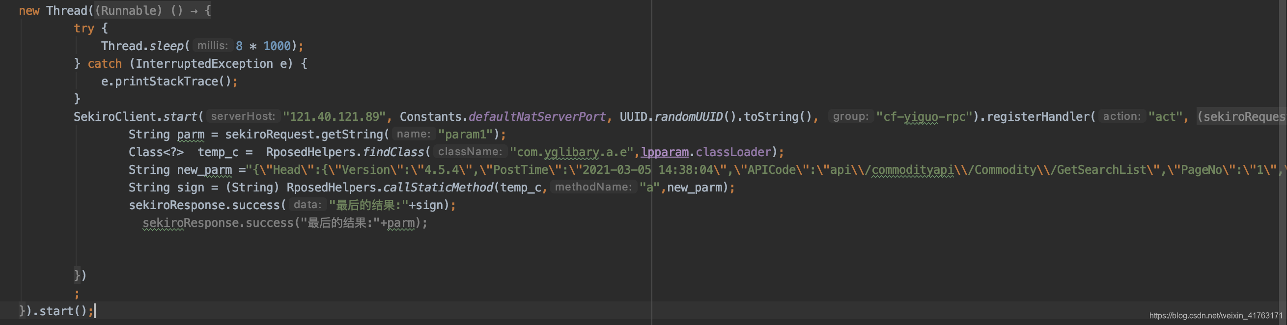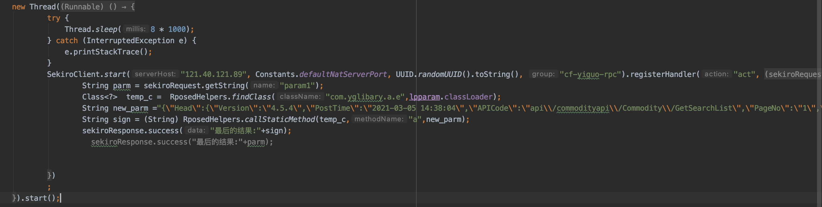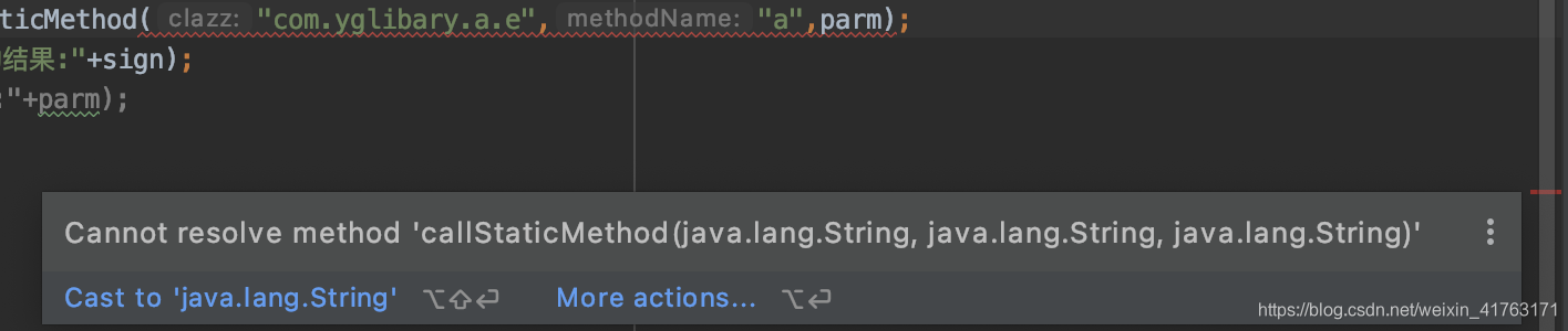 String sign = (String) RposedHelpers.callStaticMethod(temp_c,"a",new_parm);这样才能调用成功,不然就会报找不到这个方法,最后整个的写法是: