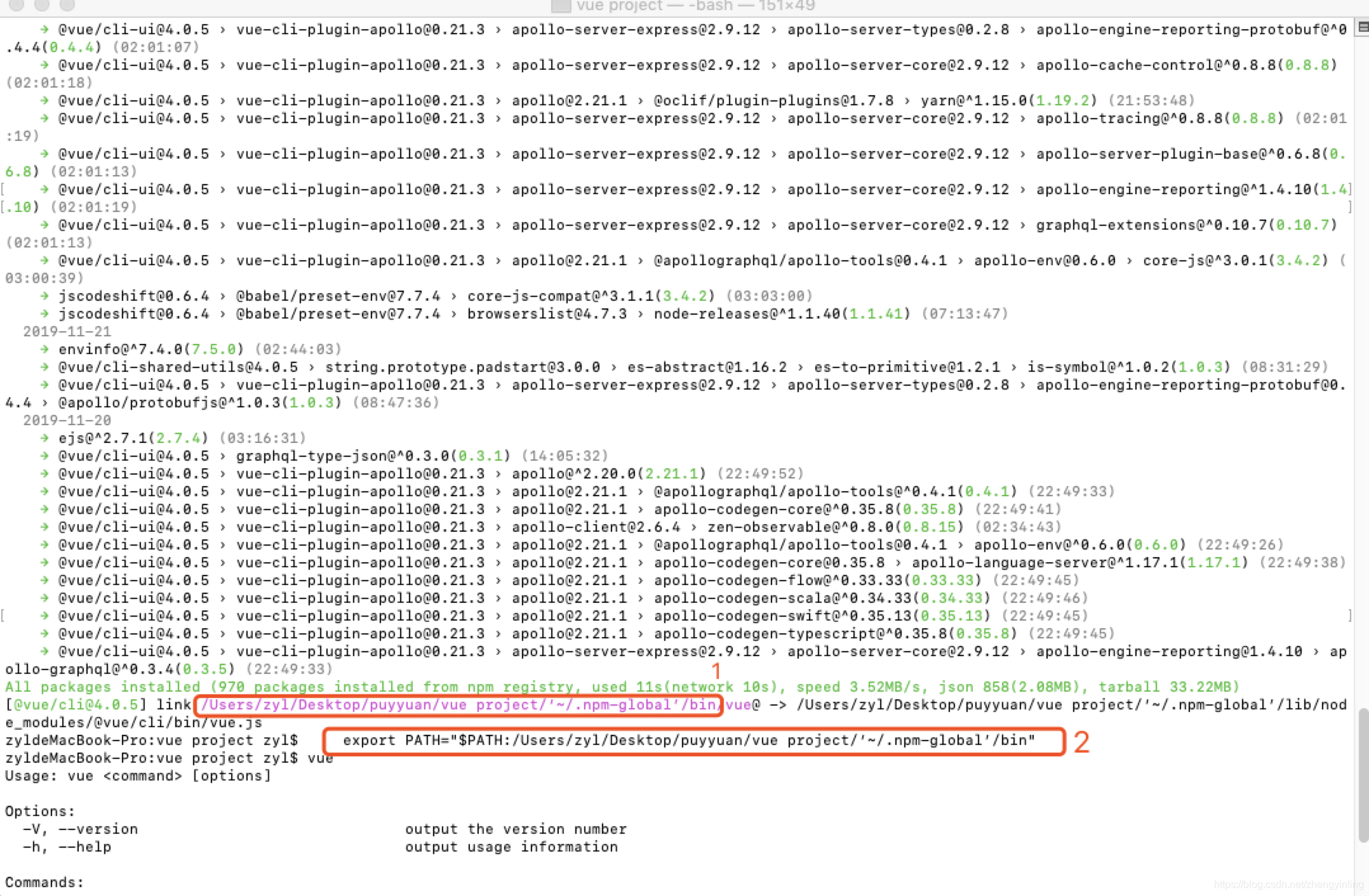 提示: -bash: vue: command not found