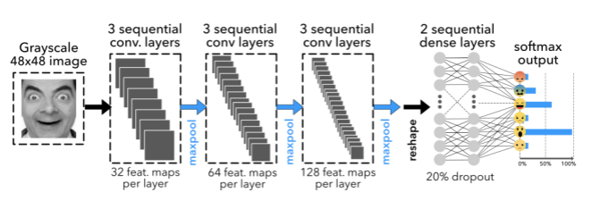 人脸表情识别,最麻烦的地方就在于,表情是有一个变化区间的。不同的表情之间,界线比较模糊。甚至不同的人会认为是不同的表情。假设可以分为,"happy":0, "angry":1, "calm":2, "scared":3, "sad":4, "disgust":5, "surprised":6这7种表情。