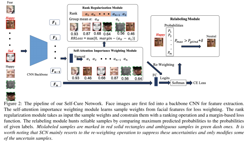 We expect the network can be cured by itself with either re-weighting or relabeling, which is the reason why we call our method as self-cured network.