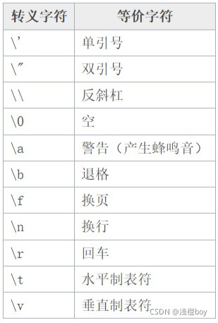 下面再简单介绍转义字符,转义字符的作用就是输出这个有特殊含义的字符,转义字符非常简单,常用的转义字符如下图所示。