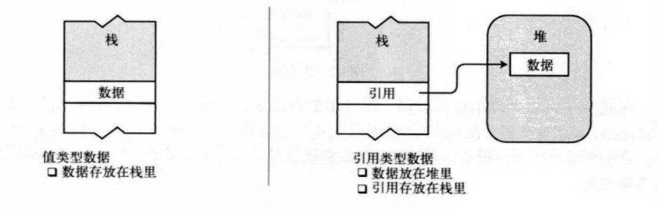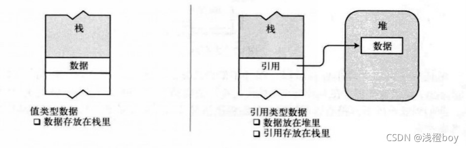 最后在说明一下值类型存储的地方,值类型存储在栈内存,引用类型存储在堆内存。如下图所示。