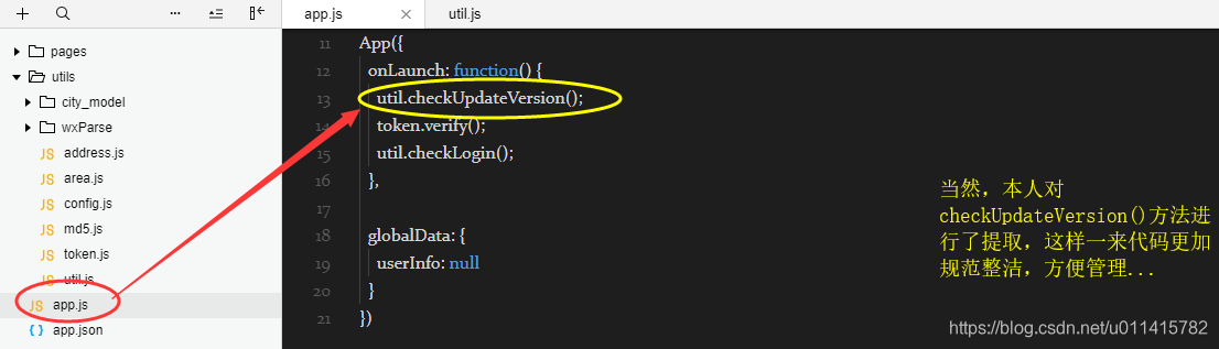 app.js的onLaunch()方法中进行调用 上面的checkUpdateVersion()