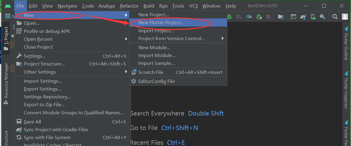 File->New->New Flutter Project