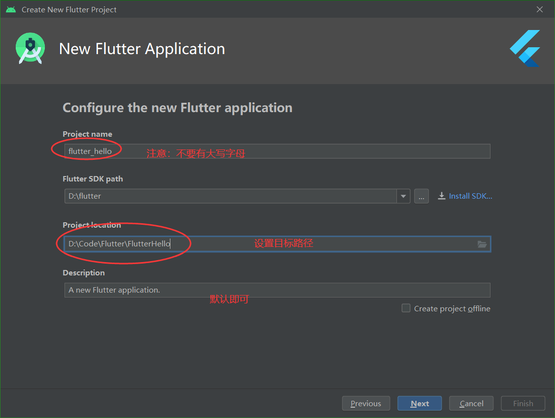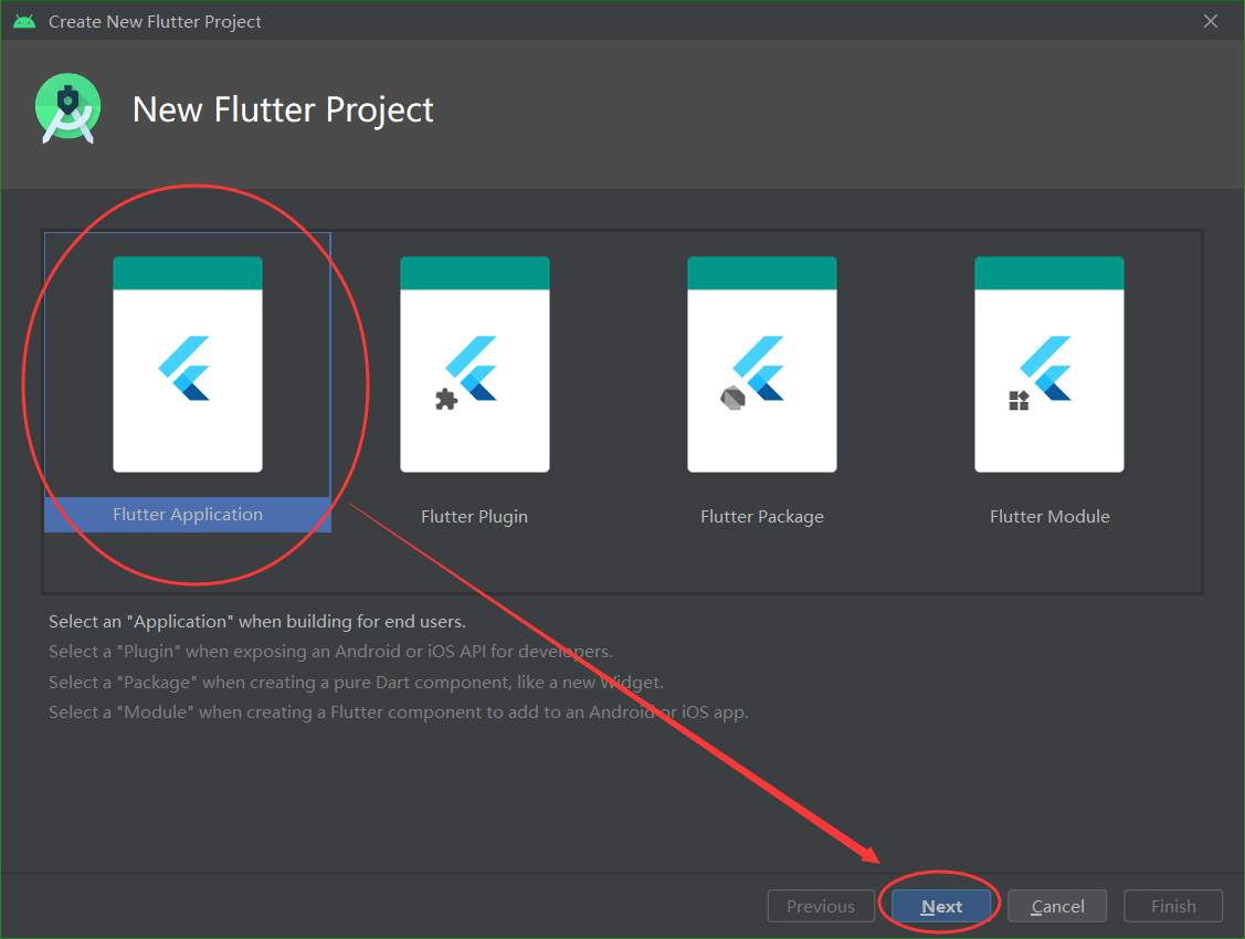 选Flutter Application ->Next