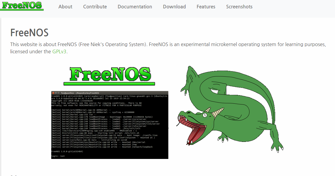 项目主页 www.freenos.org,也即是FreeNOS的官网,如下: