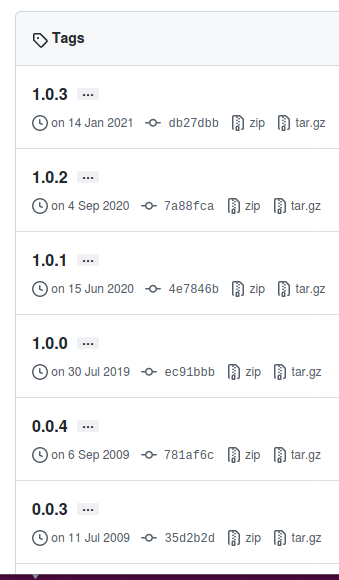 读者可以从官网上下载源码,也可以从GitHub上下载源码。截至2022年2月2日,最新的版本为1.0.3版本,GitHub历史版本有很多,如下: