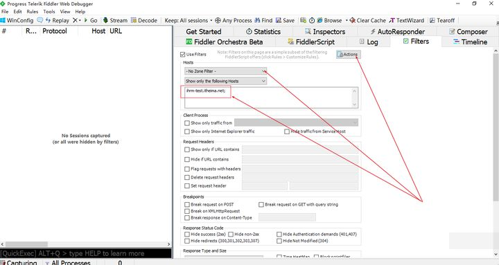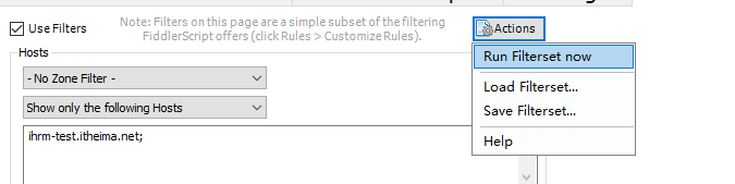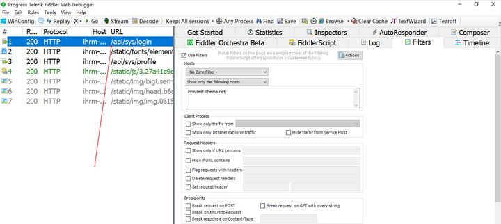 2 打开fiddler设置过滤http://ihrm-test.itheima.net的过滤条件