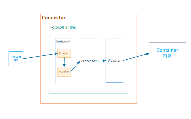 Connector对 Servlet 容器屏蔽了协议类型及 I/O 模型等的区别,无论是 HTTP 还是 AJP,在容器中获取到的都是一个标准的 ServletRequest 对象。先来看一下Connector的设计结构图: