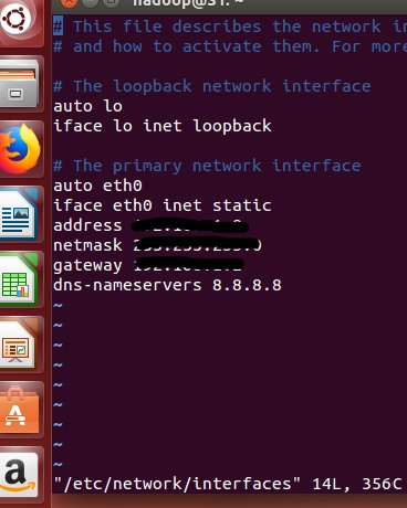sudo vi /etc/network/interfaces //进入网络配置文件