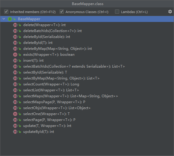 - 继承 BaseMapper 即可实现对数据库与的 Crud