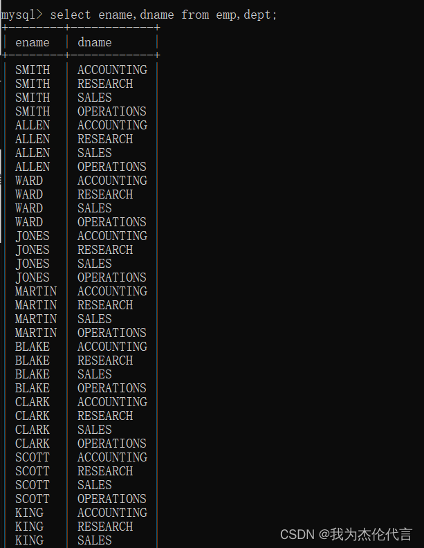 两张表连接没有任何条件限制: