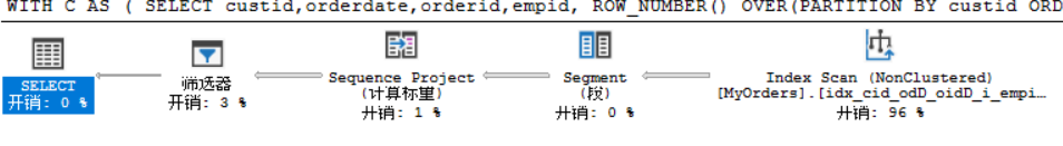 因为有索引支持ROW_NUMBER的计算,所以SQL SERVER 不需要扫描表中所有行 。相反,它只扫描索引中的前75行,然后筛选出行号为51到75的行。