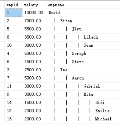 SELECT empid,salary, REPLICATE(' | ',lvl) +empname AS empname