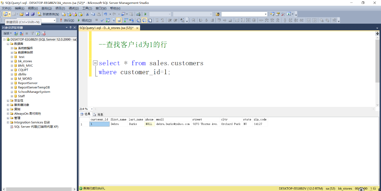 举例:查找客户id为1的行