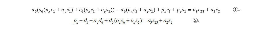 逆运动学是已知变换矩阵T,求六个关节角度 。逆运动学求解有解析法,几何法,迭代法,这里采用解析法求解。